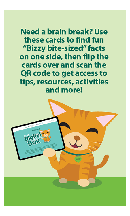 Need a brain break? Use these cards to find fun facts and access helpful tips and resources.